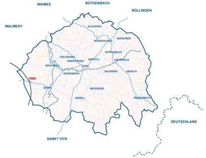 Die Gemeinde grenzt an die Gemeinden Bütgenbach (Norden), Büllingen (Norden und Osten), St.Vith (Süden), Malmedy (Westen), Weismes (Nord-Westen).